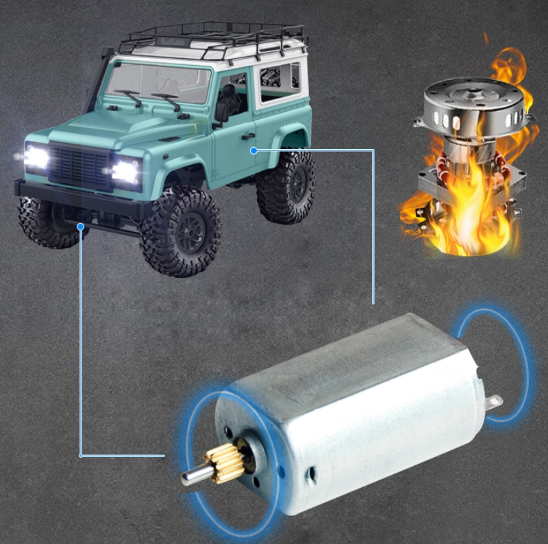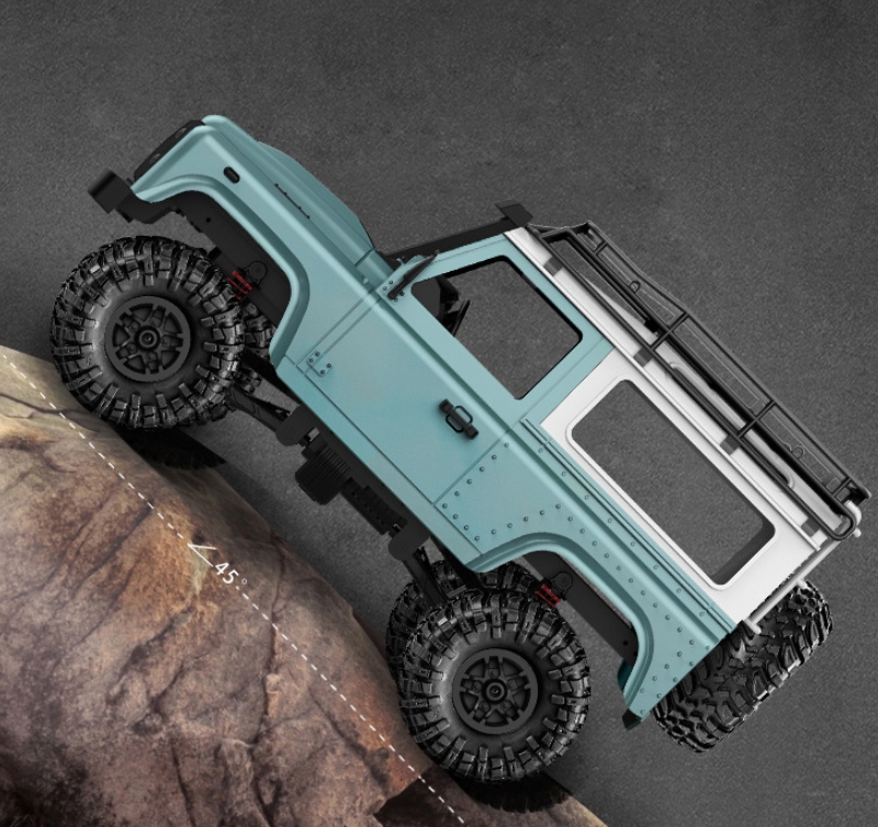 MN MODEL MN90 RC Car has a strong driveability. This is thanks to its stable bottom structure and soft tires. Its bottom structure adopts metal analog beam trapezoidal frame, which has strong anti-collision ability. Its wheels use vacuum rubber simulated tires, strong grip, extremely tough, can drive on rough stone roads, the maximum climb Angle up to 45°.